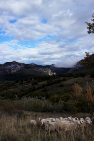 Le troupeau de brebis été déjà présent à l'installation de Eric et Marie-Claire sur la ferme. Mais d'un petit troupeau de Mérinos, le troupeau s'est peu à peu transformé pour laissé place à un joli mélange de Mourerous et Préalpes plus adaptées à nos terrains escarpés.